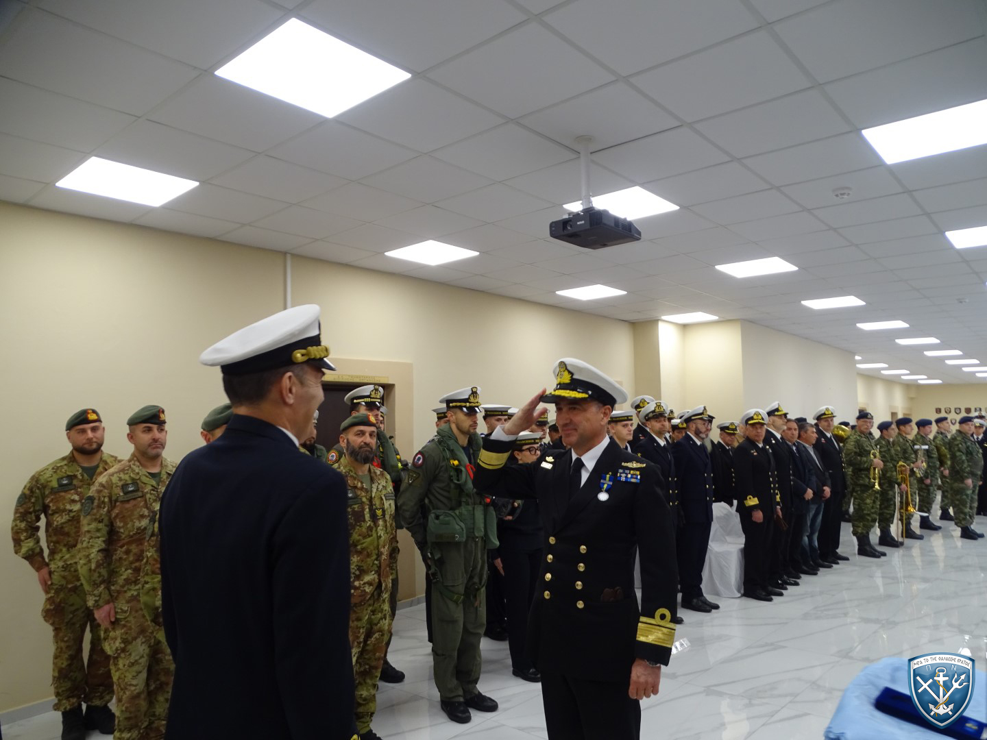 Την Τετάρτη 01 Απριλίου 2026, πραγματοποιήθηκε επί της Φρεγάτας (Φ/Γ) ΑΙΓΑΙΟΝ, στο Ναύσταθμο Κρήτης (ΝΚ), η τελετή παράδοσης των καθηκόντων Διοικητού εν Πλω (COM FHQ) της επιχείρησης EUNAVFOR IRINI από τον Υποναύαρχο Σπυρίδωνα Πολλάτο ΠΝ στον Ιταλό Υποναύαρχο Bielli, παρουσία του Ιταλού Διοικητή της Επιχείρησης IRINI Υποναυάρχου Marco Casapieri.