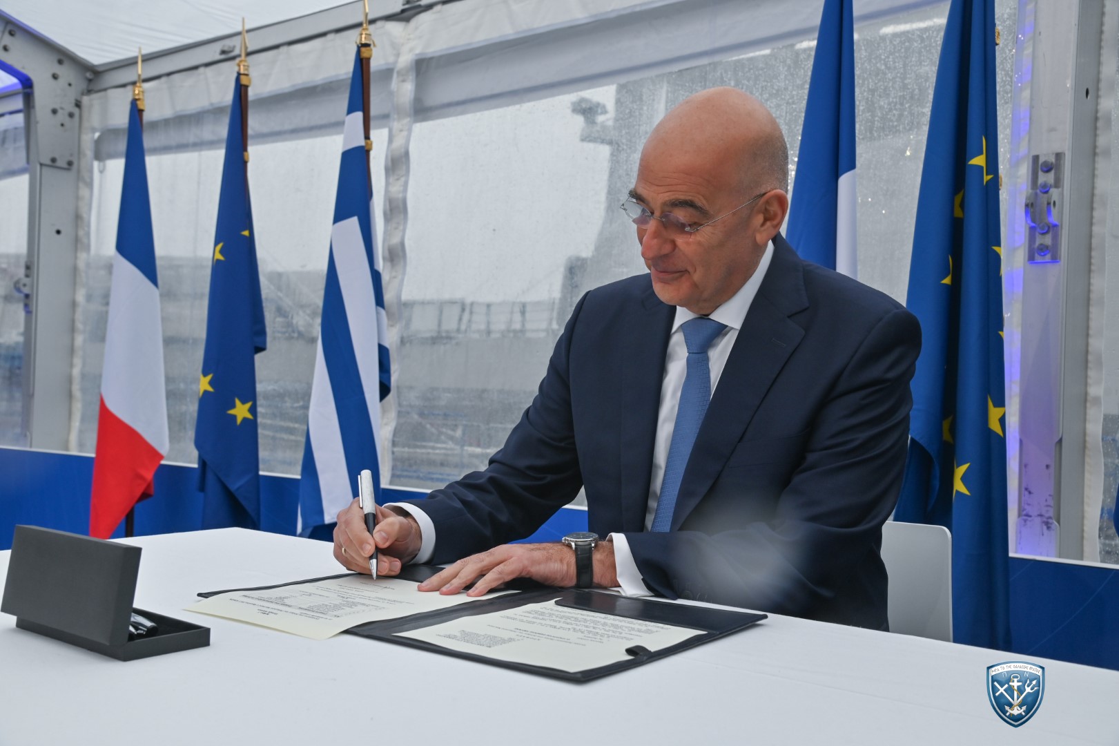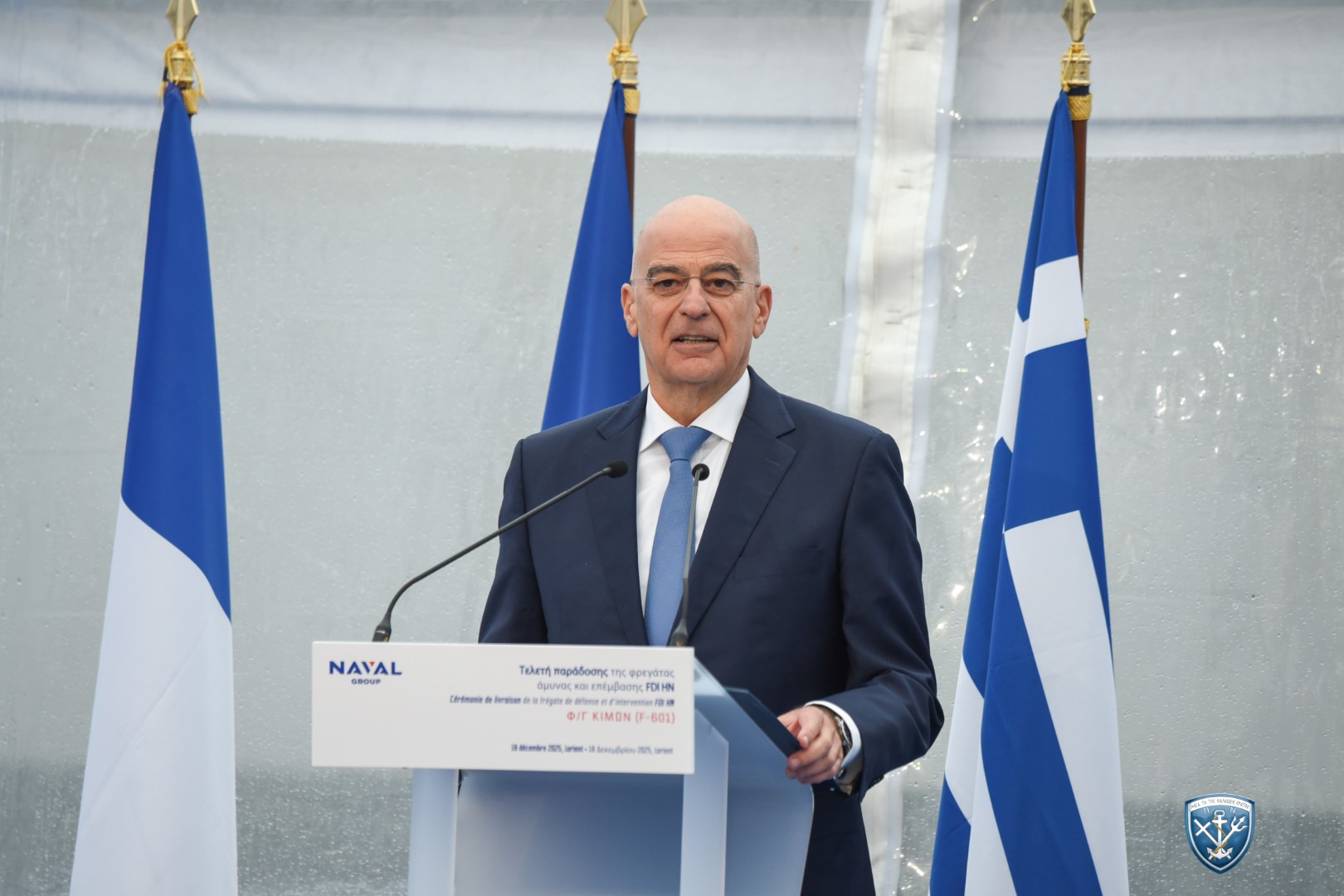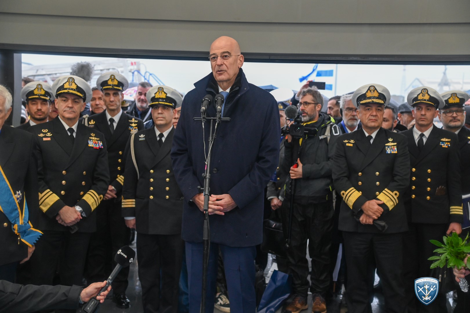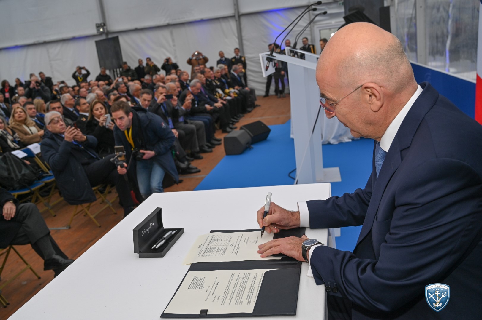 “ Με ιδιαίτερη χαρά, μεγάλη περηφάνια και μοναδική τιμή, ευρίσκομαι σήμερα στη Lorient, στα εντυπωσιακά Ναυπηγεία της Naval Group, για την ιστορική τελετή ύψωσης σημαίας και ονοματοδοσίας της 1 ης Φρεγάτας FDI του Πολεμικού Ναυτικού, της Φρεγάτας ΚΙΜΩΝ.