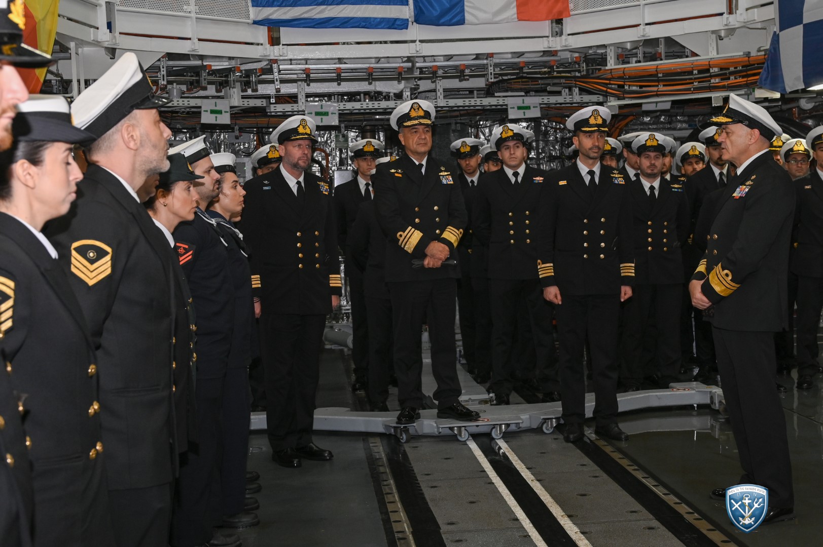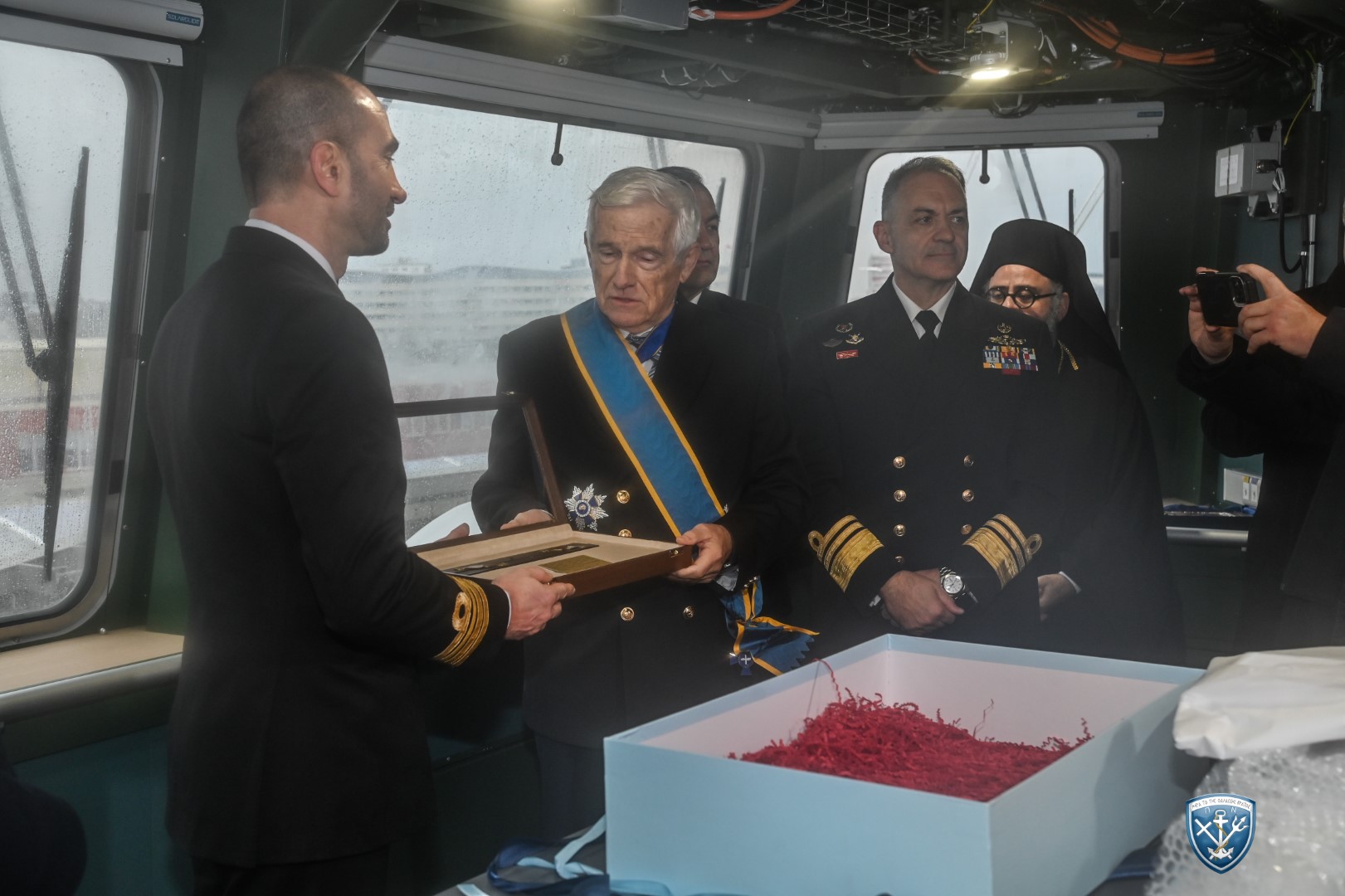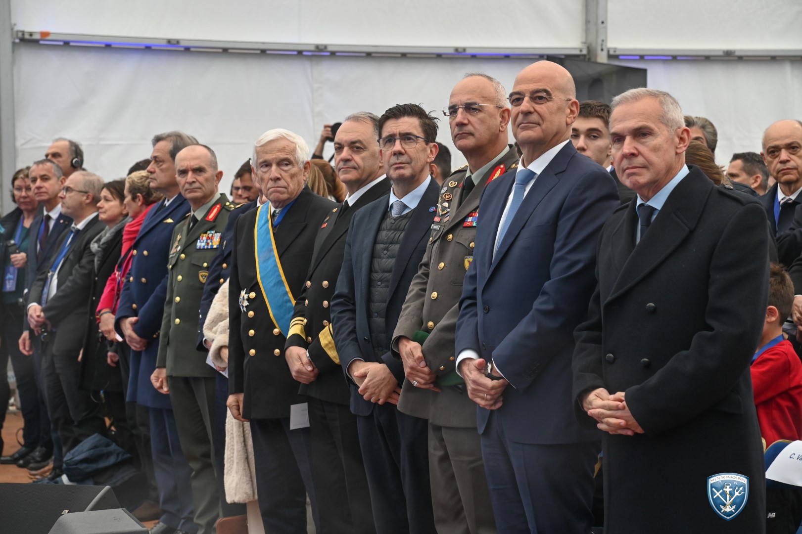 Στην τελετή παρέστησαν επίσης, η Υπουργός Άμυνας της Γαλλίας Catherine Vautrin, ο Βουλευτής και τέως Υπουργός Εθνικής Άμυνας Νίκος Παναγιωτόπουλος, οι Βουλευτές Διονύσης Χατζηδάκης και Στάθης Κωνσταντινίδης, ο Γενικός Γραμματέας του Υπουργείου Εθνικής Άμυνας Αντώνιος Οικονόμου, ο Αρχηγός ΓΕΣ Αντιστράτηγος Γεώργιος Κωστίδης, ο Αρχηγός ΓΕΑ Αντιπτέραρχος (Ι) Δημοσθένης Γρηγοριάδης, ο Γενικός Γραμματέας Εθνικής Ασφαλείας Θάνος Ντόκος, Επίτιμοι Αρχηγοί ΓΕΝ, ο Πολιτικός Διοικητής του Αγίου Όρους, πρώην ΥΕΘΑ και επίτιμος Αρχηγός ΓΕΣ, Στρατηγός ε.α. Αλκιβιάδης Στεφανής, μέλη του Ανώτατου Ναυτικού Συμβουλίου, δωρητές των Ενόπλων Δυνάμεων, ο Πρέσβης της Ελλάδος στη Γαλλία, Αντώνιος Αλεξανδρίδης, η Πρέσβης της Γαλλικής Δημοκρατίας στην Ελλάδα, Laurence Auer, o Πρόεδρος & Διευθύνων Σύμβουλος της Naval Group, Pierre Éric Pommellet, εκπρόσωποι ξένων διπλωματικών και στρατιωτικών αντιπροσωπειών, εκπρόσωποι ελληνικών αμυντικών βιομηχανιών, καθώς και λοιποί προσκεκλημένοι. Της τελετής του Αγιασμού χοροστάτησε ο Σεβασμιότατος Μητροπολίτης Γαλλίας κ.κ. Δημήτριος.