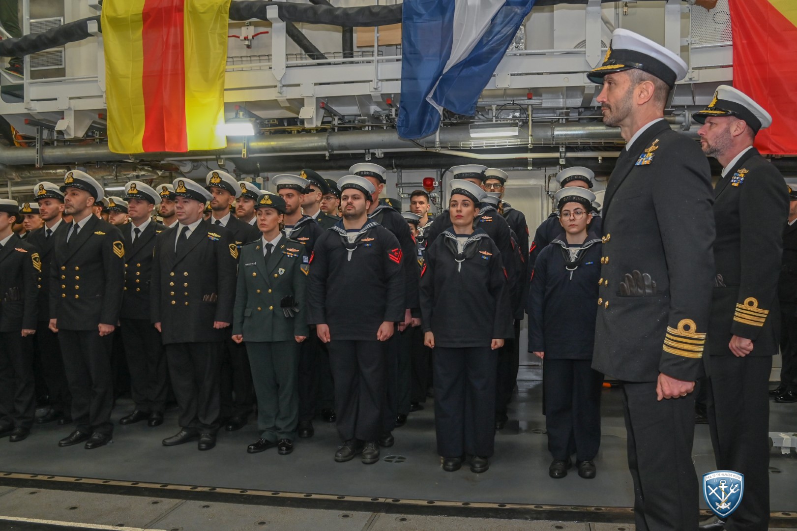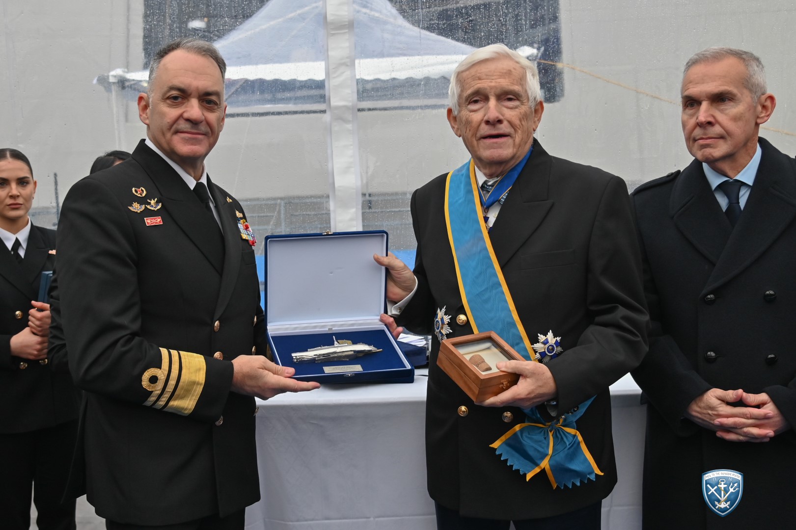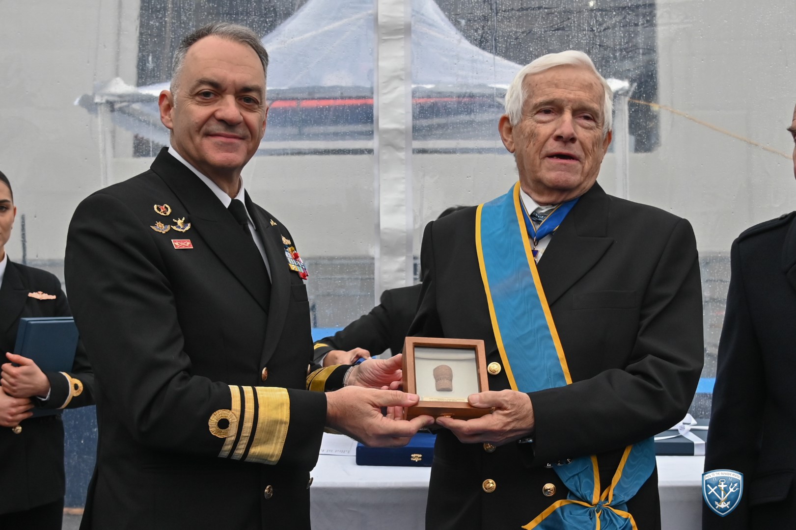 Στην τελετή παρέστησαν επίσης, η Υπουργός Άμυνας της Γαλλίας Catherine Vautrin, ο Βουλευτής και τέως Υπουργός Εθνικής Άμυνας Νίκος Παναγιωτόπουλος, οι Βουλευτές Διονύσης Χατζηδάκης και Στάθης Κωνσταντινίδης, ο Γενικός Γραμματέας του Υπουργείου Εθνικής Άμυνας Αντώνιος Οικονόμου, ο Αρχηγός ΓΕΣ Αντιστράτηγος Γεώργιος Κωστίδης, ο Αρχηγός ΓΕΑ Αντιπτέραρχος (Ι) Δημοσθένης Γρηγοριάδης, ο Γενικός Γραμματέας Εθνικής Ασφαλείας Θάνος Ντόκος, Επίτιμοι Αρχηγοί ΓΕΝ, ο Πολιτικός Διοικητής του Αγίου Όρους, πρώην ΥΕΘΑ και επίτιμος Αρχηγός ΓΕΣ, Στρατηγός ε.α. Αλκιβιάδης Στεφανής, μέλη του Ανώτατου Ναυτικού Συμβουλίου, δωρητές των Ενόπλων Δυνάμεων, ο Πρέσβης της Ελλάδος στη Γαλλία, Αντώνιος Αλεξανδρίδης, η Πρέσβης της Γαλλικής Δημοκρατίας στην Ελλάδα, Laurence Auer, o Πρόεδρος & Διευθύνων Σύμβουλος της Naval Group, Pierre Éric Pommellet, εκπρόσωποι ξένων διπλωματικών και στρατιωτικών αντιπροσωπειών, εκπρόσωποι ελληνικών αμυντικών βιομηχανιών, καθώς και λοιποί προσκεκλημένοι. Της τελετής του Αγιασμού χοροστάτησε ο Σεβασμιότατος Μητροπολίτης Γαλλίας κ.κ. Δημήτριος.