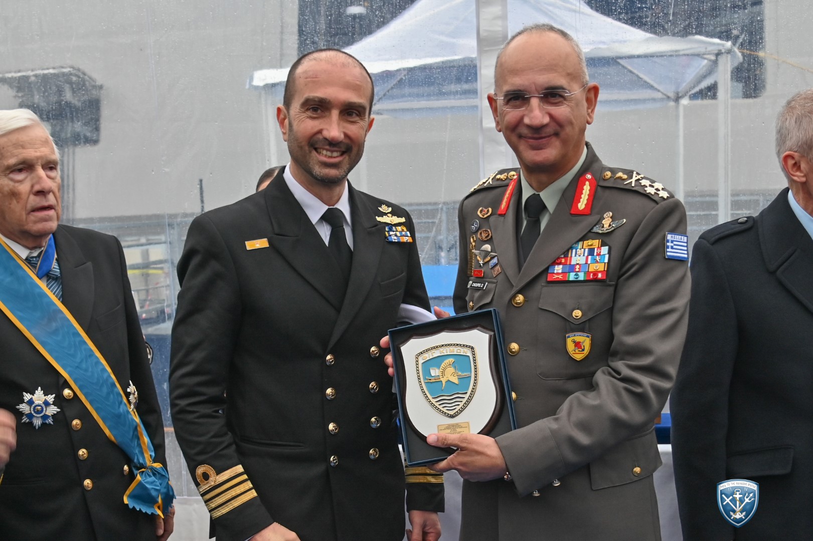Η ακμή του Πολεμικού Ναυτικού και της Ελλάδας ανέκαθεν σχετιζόταν με μία ανάστροφη πλώρη καραβιού. Από το ακρόπρωρο της Αθηναϊκής Τριήρους, στο θρυλικό Θ/Κ ΑΒΕΡΩΦ, μέχρι σήμερα και την επιβλητική πλώρη της Φρεγάτας ΚΙΜΩΝ, στην οποία σε λίγο θα επιβείτε. Σας προτρέπω να ξεκινήσετε τον «πλου» σας με ακάθεκτη ορμή, αποφασιστικότητα και υψηλό φρόνημα, ώστε σύντομα να ατενίζετε με βλέμμα νικητή και ιδιοκτήτη τις ελληνικές θάλασσες, άξιοι συνεχιστές μιας ένδοξης ναυτικής παράδοσης. Πρόσφατα διαμηνύσατε προς κάθε κατεύθυνση ένα ηχηρό μήνυμα «Ερχόμαστε». Σήμερα, λοιπόν σας απαντούμε, «σας περιμένουμε, ενωμένοι και περήφανοι».